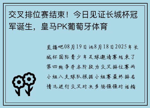 直播吧08月19日讯 8月18日,2025年长城杯国际青少年足球邀请赛结束了第四轮争夺。本阶段为交叉排位赛,两小组八支球队根据小组赛最终排名情况进行交叉对决,多场强强对话精彩纷呈,让我们共同聚焦今日战况。下午15点30分,北京U16对阵第比利斯迪那摩,与奥季尔艾哈迈多夫对阵济州SK的比赛同时开场。北...