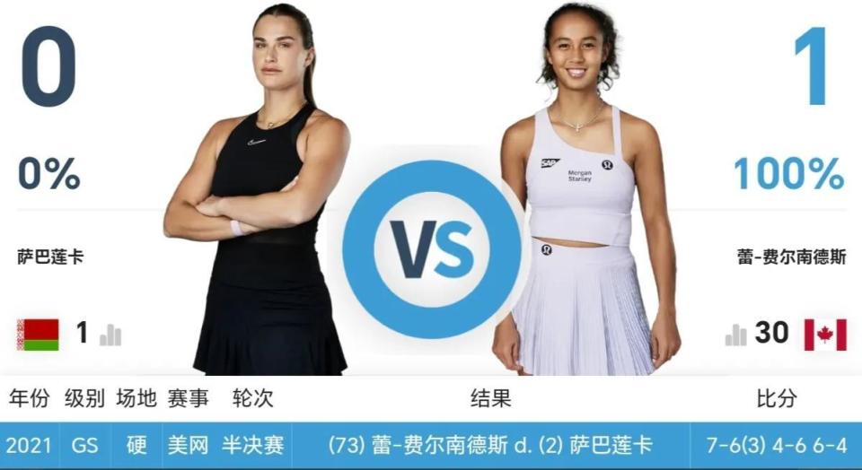 2021赛季的半决赛,当时只有19岁的费尔南德斯以2-1的比分力克时任世界第2萨巴伦卡,首次打进大满贯决赛,最终获得亚军。
